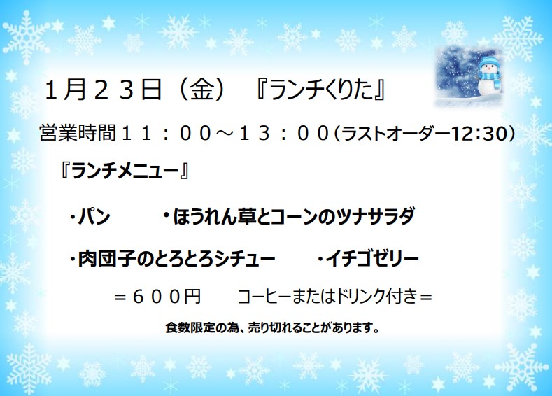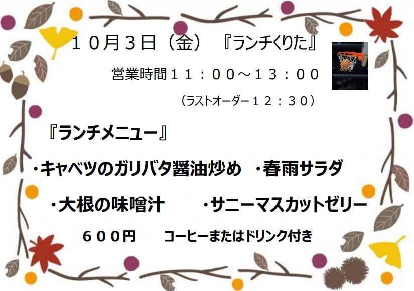 高等部普通科・中学部の作業学習製品を販売中!! 生徒が製作した作業学習製品を、ランチくりた店内にて販売しています。