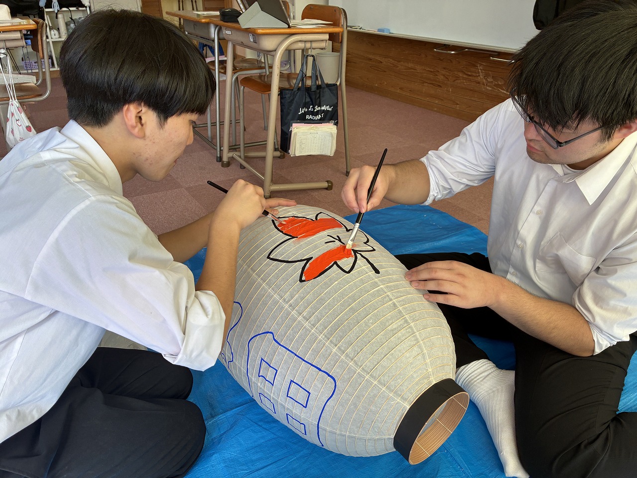 高等部総合サービス科2年 竿燈提灯の制作~修学旅行での交流に向けて~