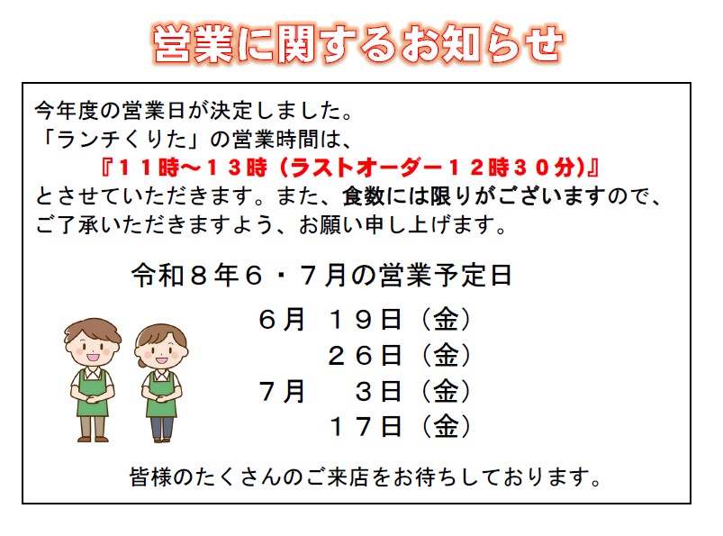 高等部普通科・中学部の作業学習製品を販売中!! 生徒が製作した作業学習製品を、ランチくりた店内にて販売しています。