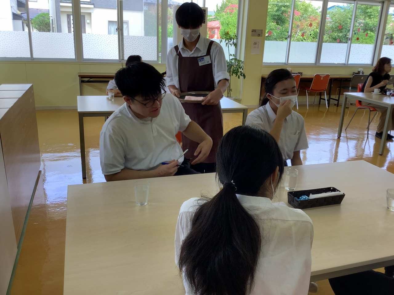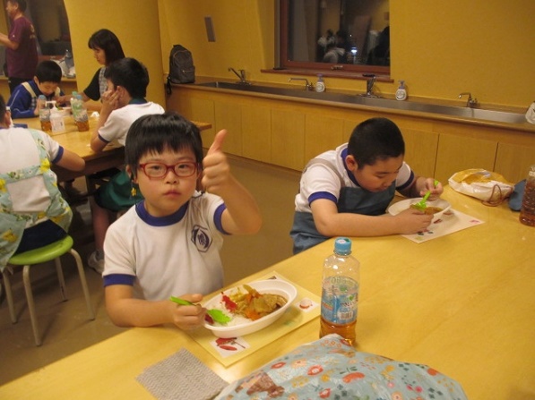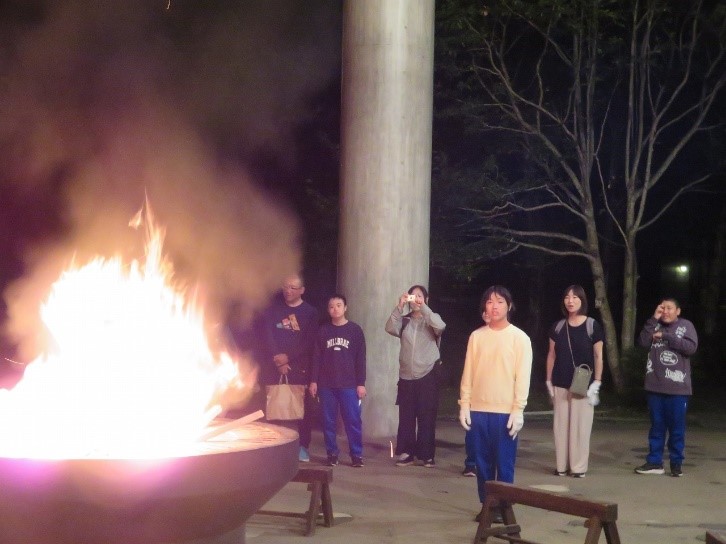 7月10日~11日に一泊二日の日程で実施しました。一日目は「マンタラメの森」のハイキングを行いました。生徒同士が互いに声を掛け、励まし合いながらチェックポイントを目指して歩きました。キャンプファイヤーでは、昨年度の経験や事前学習の実施により、火の女神様とのセレモニーを安全に進めました。その後は、火を囲んでみんなでダンスを踊り、盛り上がりました。二日目は、創作活動としてルームプレートを制作しました。生徒一人一人が事前学習で完成のイメージをもっていたことで、スムーズに活動できました。「もっとやってみよう」という学年テーマの下、昨年度と比べ、リーダーや副リーダーを中心に声を掛け合い、自分の役割を果たす姿が多く見られました。
